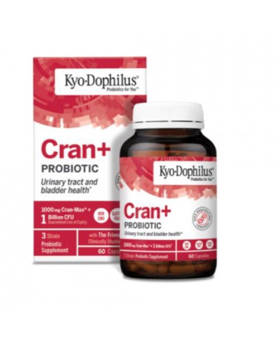 Kyo-Dophilus® Cran + Probiotics é uma fórmula que combina mil milhões de células vivas de 3 estirpes de Probióticos altamente biocompatíveis Lactobacillus gasseri KS-13,Bifidobacterium bifidum G9-1 and Bifidobacterium longum MM-2 (The Friendly Trio®) com 1 g Cran-Max®, extrato de Arando vermelho patenteado altamente concentrado (34: 1). Esta combinação foi estabelecida de forma a promover a saúde do trato urinário, através da melhoria da flora intestinal.