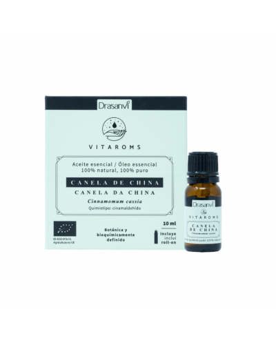 Ingredientes:Óleo essencial de Canela da China Cinnamomum cassia* 100% natural, 100% puro, definido botânica e bioquimicamente, obtido por arrasto de vapor de água. *Ingrediente procedente da Agricultura Biológica