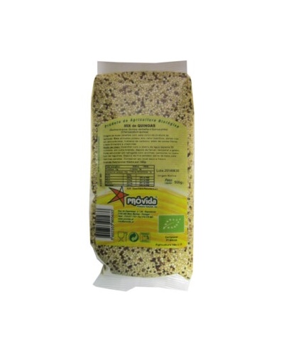 Mix de Quinoas BIO, 500g- Ingredientes: Quinoa* (branca, vermelha e preta) de produção biológica. Poderá conter vestígios de soja, glúten, sésamo e frutos de casca rija. *Certiplanet, PT-BIO-04, Agricultura não UE. Colorida mistura que une as melhores propriedades da quinoa à melhoria organolética das suas receitas. Rico em fibra e nos minerais ferro, zinco e magnésio.