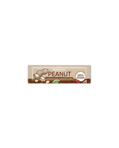 Barra de Chocolate com Amendoim Bonvita BIO 40g. Sem glúten. Vegan. Ingredientes: Xarope de milho*, chocolate (20%) (açúcar de cana*, manteiga de cacau*, xarope de arroz em pó*, pasta de cacau*, baunilha*), xarope de arroz em pó*, AMENDOIM em pedaços* (14%), farinha de SOJA*, farinha de milho*, manteiga de cacau*- *de produção biológica. Pode conter vestígios de frutos de casca rija e leite. NL-BIO-01. Origem: Não UE. Teor mínimo de cacau: 34%