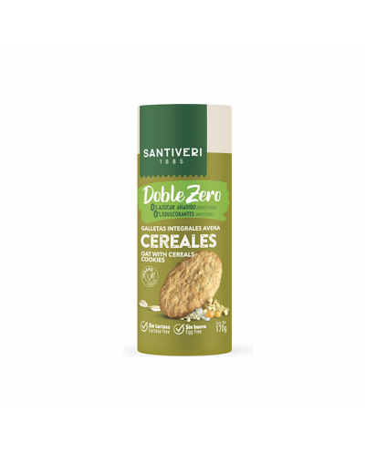 Os biscoitos duplo zero Santiveri são biscoitos crocantes feitos com cereais. Não contêm açúcares adicionados ou adoçantes.