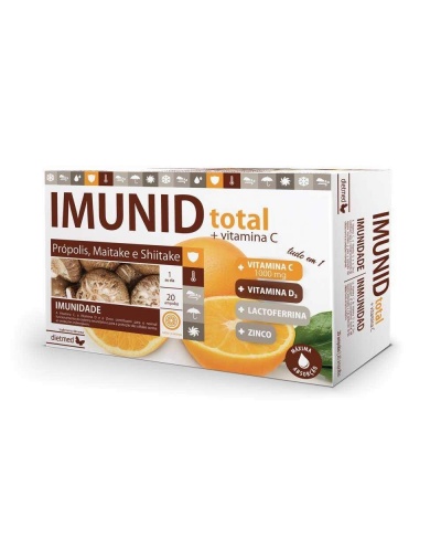 Própolis 100 mg, Lactobacillus acidophilus 1x109 UFC/g 50 mg, Maitake 50 mg, Shiitake 25 mg, Lactoferrina 10 mg, Vitamina C 1000 mg (1250% VRN*), Vitamina D3 100 µg (2000% VRN*), Zinco 10 mg (100% VRN*). *Valor de Referência do Nutriente