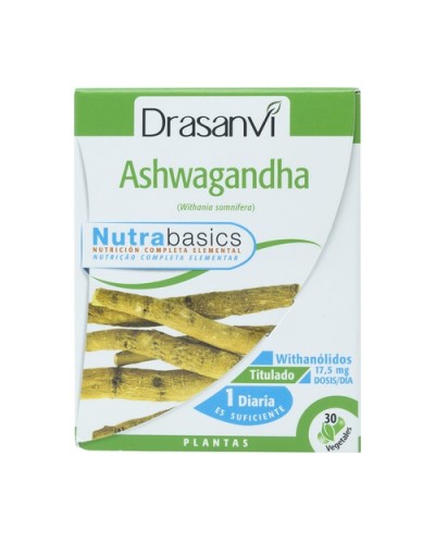 Nutrabasics ashwagandha de Drasanvi é um suplemento alimentar à base de extrato seco de Ashwagandha, que ajuda a manter o relaxamento e o bem-estar físico e intelectual. As cápsulas de Ashwagandha são adequadas para veganos e vegetarianos e fornecem 17,5 mg de withanolides.